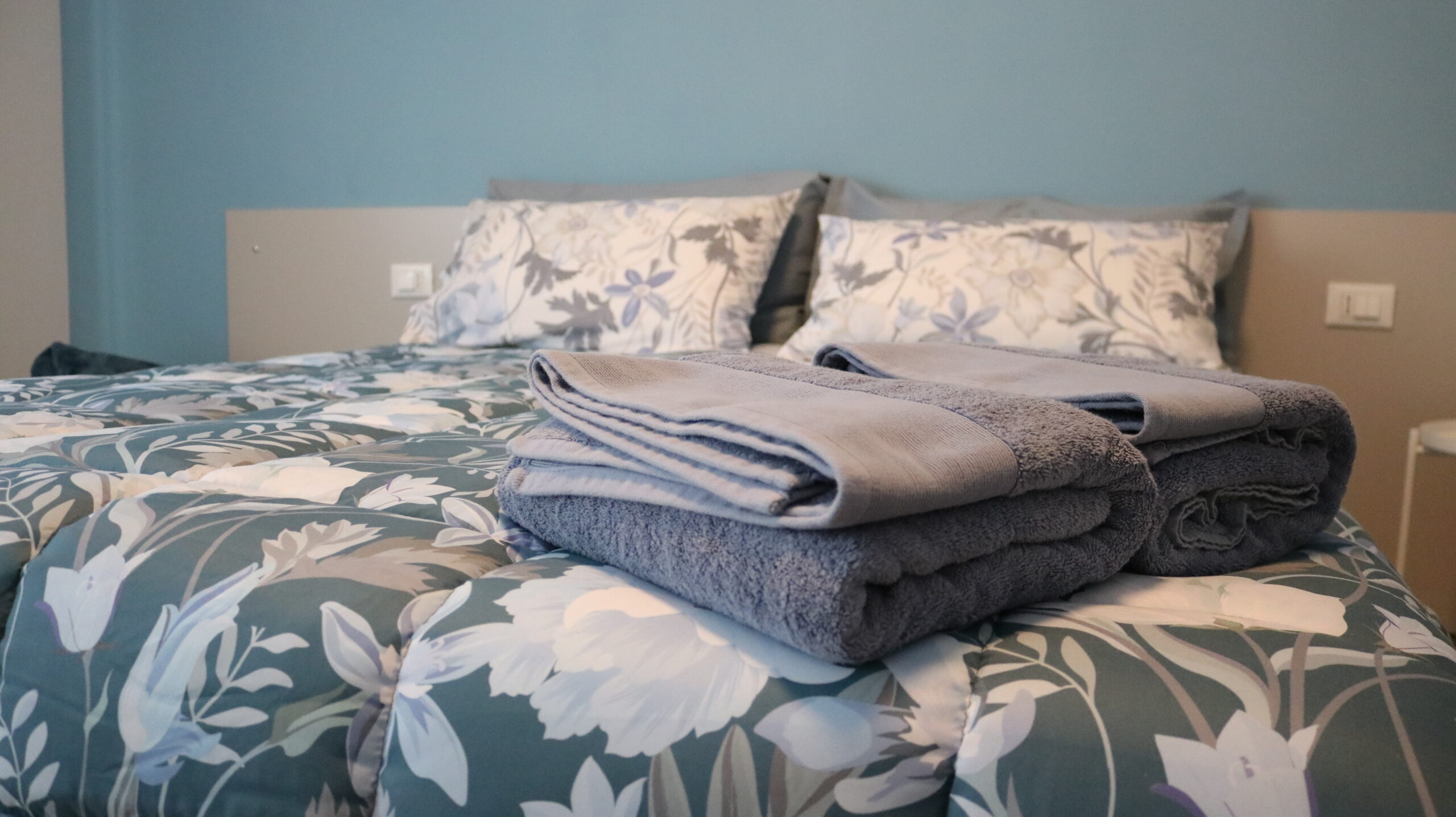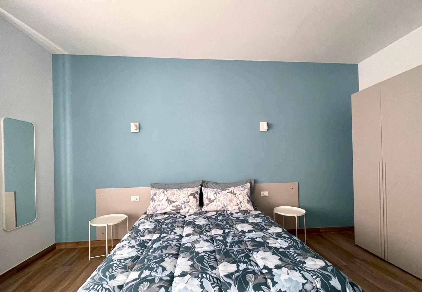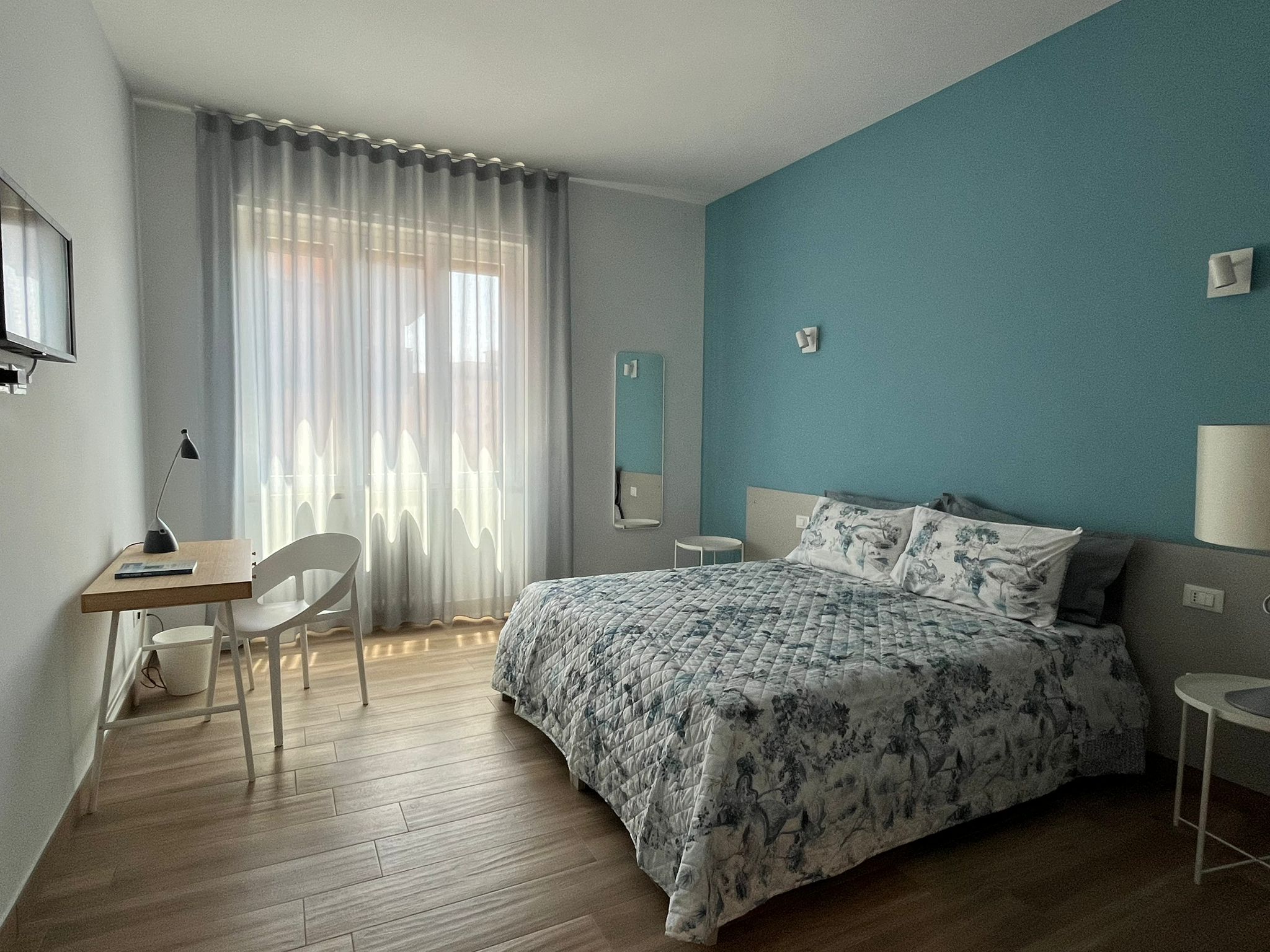 Camera doppia configurabile come matrimoniale o con letti singoli, dotata di postazione smart working e ampia finestra che dona luminosità alla stanza