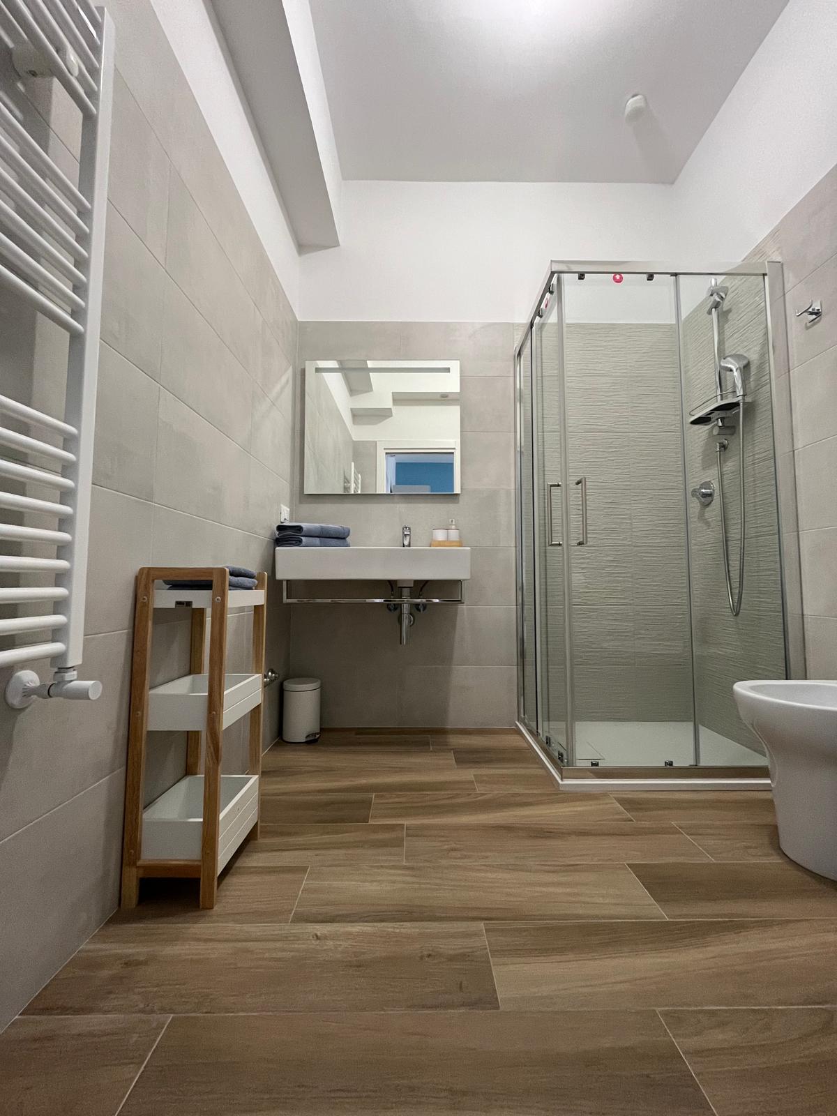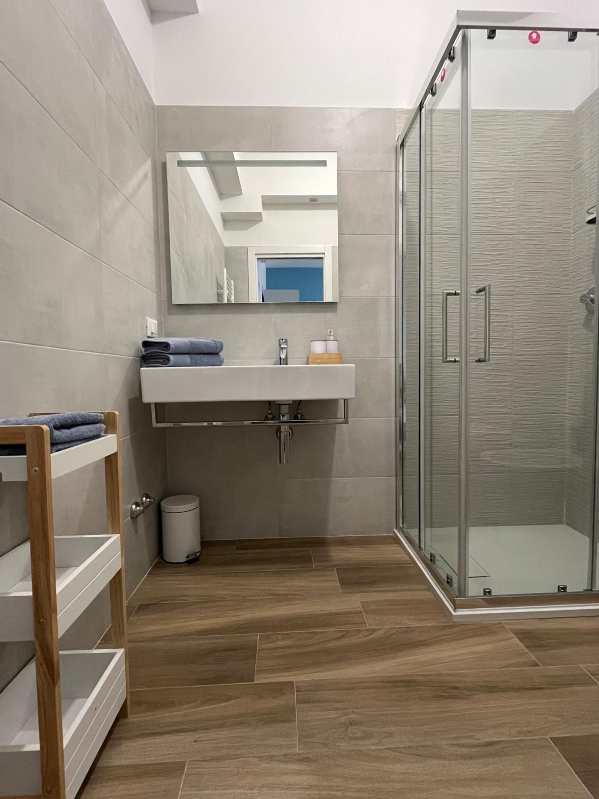 La camera ha un bagno privato, dotato di tutti i servizi con comoda cabina doccia, phon, biancheria di pregio e appositi dispenser per shampoo o sapone.